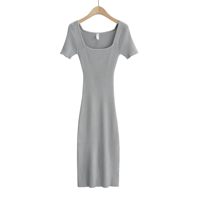 Vintage Dress Women Short Sleeve Dresses Summer Knitted Sweater Dress Elegant Square Neck Bodycon Dresses Party Midi Dress Split Dresses Aliexpress
